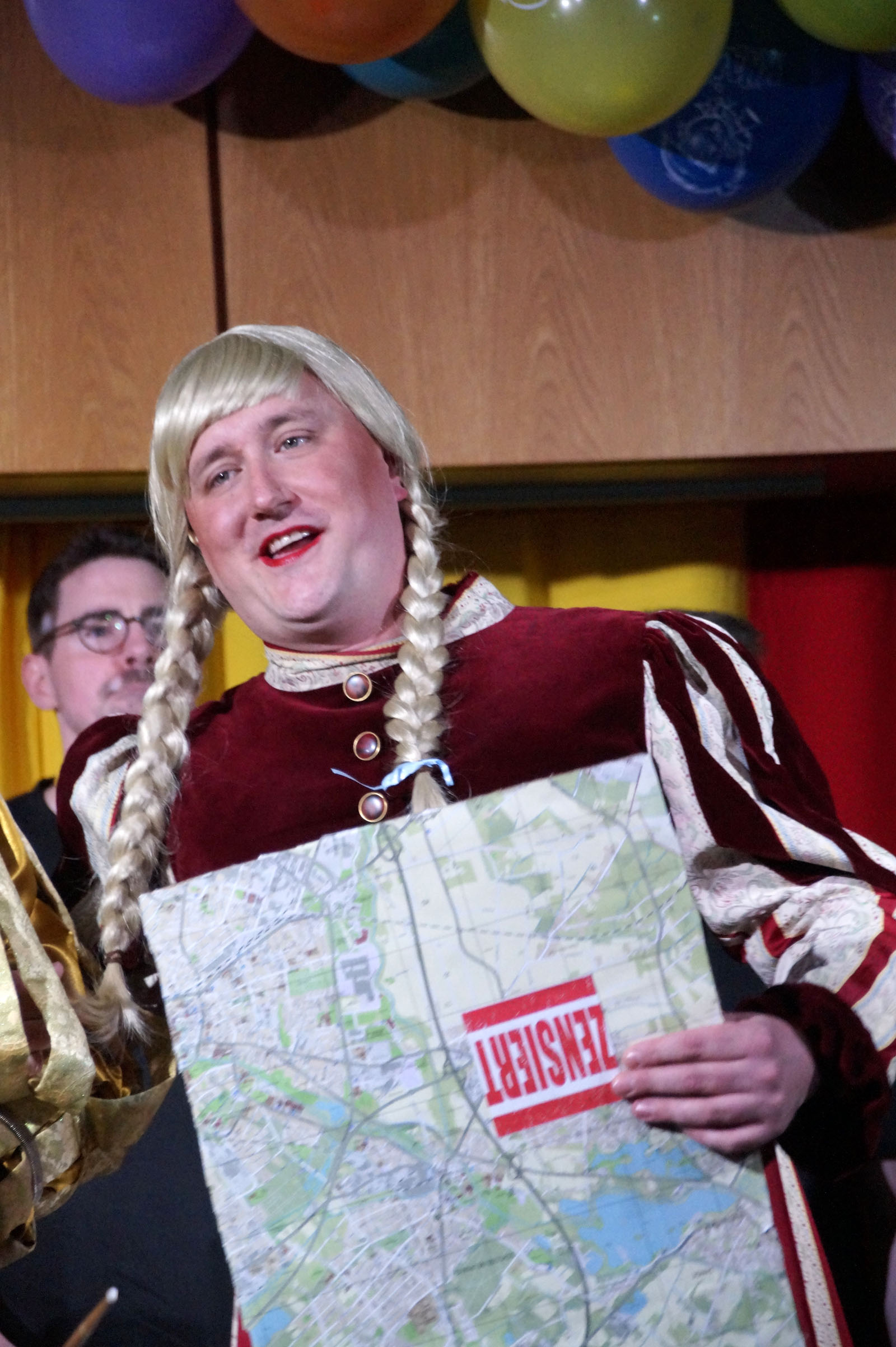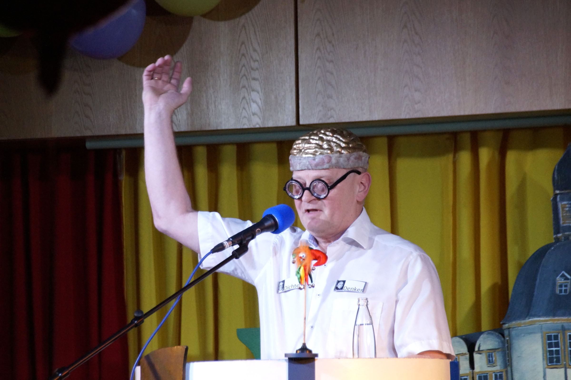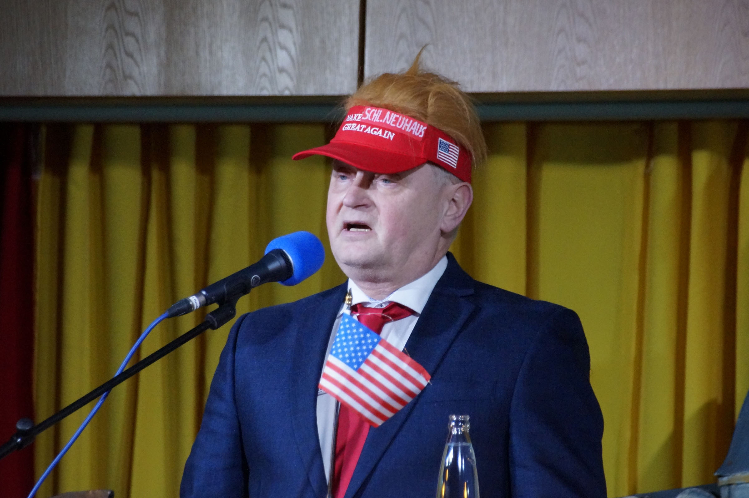 Es folgte eine Büttenrede von Andreas Kirchner, der zunächst erklärte, warum es über einen Donald Trump kaum noch Witze zu machen gebe, bevor er humorvoll die Unwägbarkeiten im „Land der Dichter und Denker“ beleuchtete.