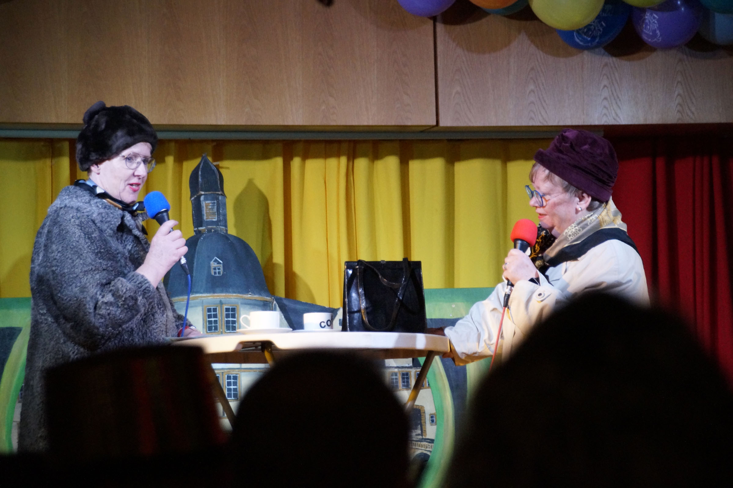 In einem weiteren Sketch erklärten Ingrid Kröger und Claudia Ernst augenzwinkernd, wie die Menschheit den aufrechten Gang erlernte – selbstverständlich eine Erfindung der Frauen.