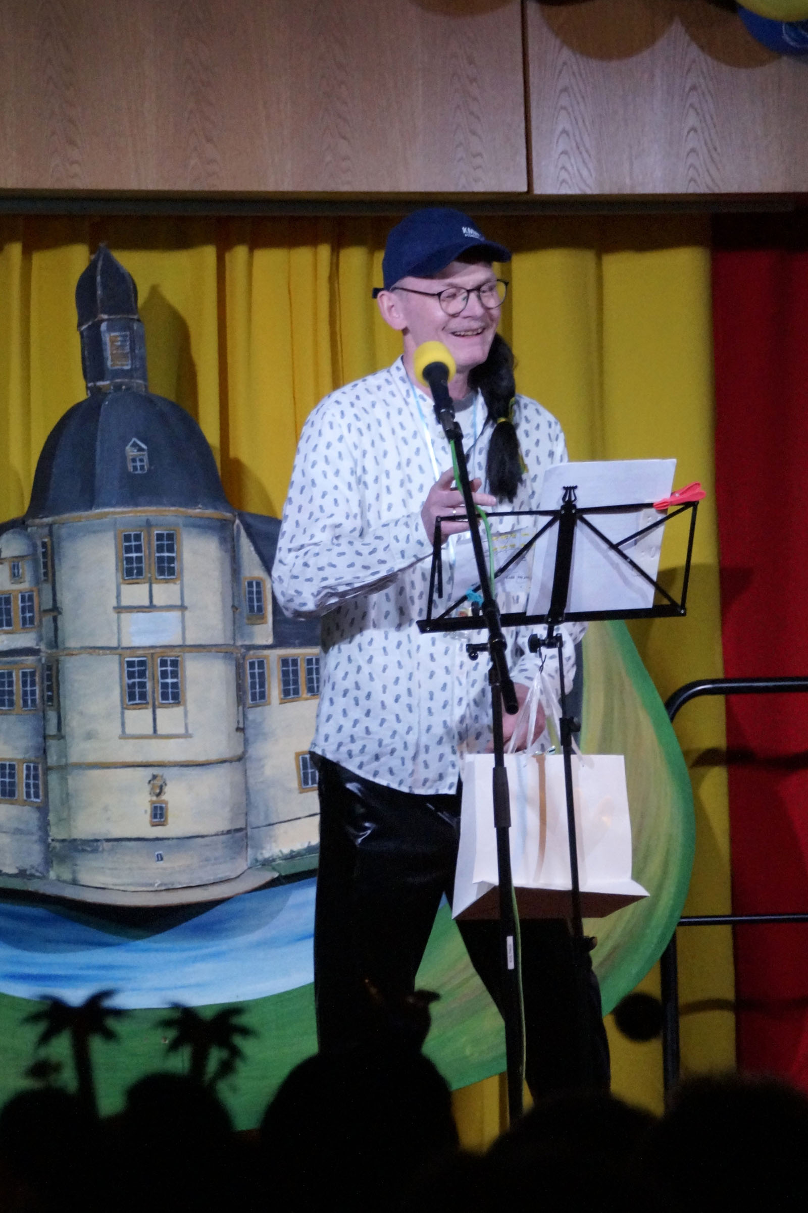 Es folgte eine Büttenrede von Andreas Kirchner, der zunächst erklärte, warum es über einen Donald Trump kaum noch Witze zu machen gebe, bevor er humorvoll die Unwägbarkeiten im „Land der Dichter und Denker“ beleuchtete.
